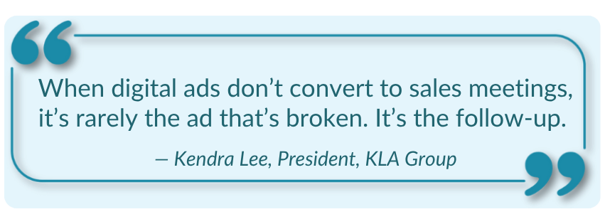 Digital ads generate form fills, but conversions happen only when follow-up is fast, consistent, and personal. As Fractional CMOs, KLA Group helps insurance agencies and service-based businesses align their marketing and sales to turn ad leads into qualified opportunities.