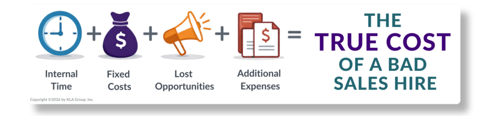 Internal time + fixed costs + lost opportunities + additional expenses = the true cost of a bad sales hire.